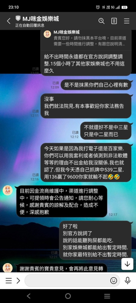 最讓我火大的是,我這次申請提款的金額才 9600 元而已。9600 元耶!連一萬塊都不到的這種小金額,咪金娛樂城竟然也出不起?還是說你們現在窮到連不到一萬塊都要黑?這種規模還敢出來開娛樂城,真的笑死人,乾脆早點關門大吉算了。現在台灣博弈圈的名聲就是被你們這種老鼠屎給搞臭的,讓大家覺得玩個遊戲像是在跟詐騙集團鬥智鬥法。