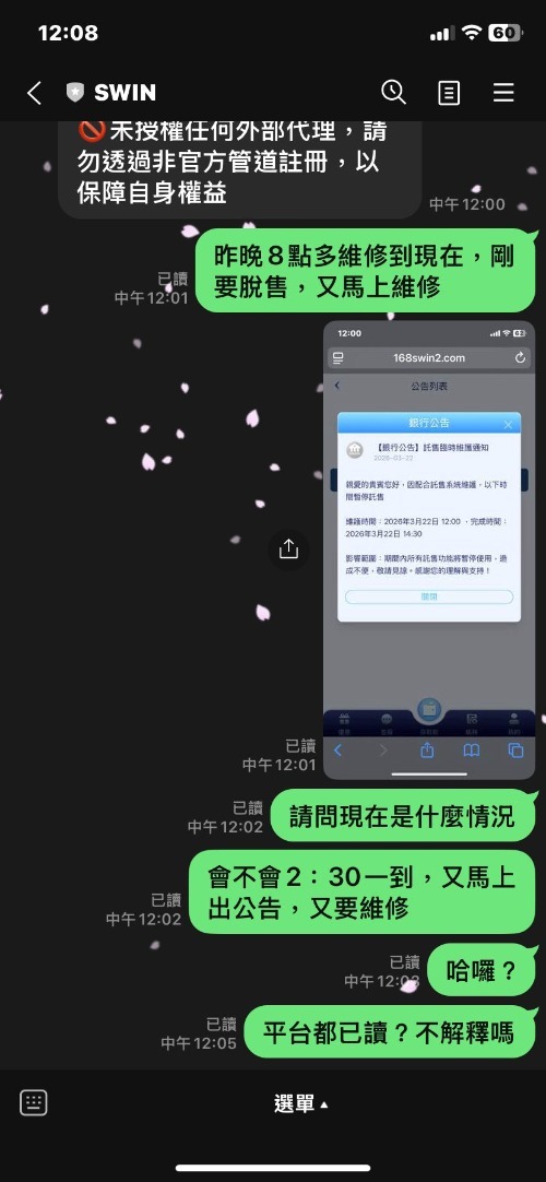 更誇張的是,星盈娛樂城好像把維修當成常態,每天都有不同時段的公告更新,搞得玩家連下注節奏都亂掉,想玩遊戲都不知道該何時入場。更別說遇到大獎或者想提現的時候,完全沒有出路。你問客服?只能等,等到你心態炸裂為止。老實說,像這種情況下,這星盈娛樂城完全就是在玩玩家心理,真的讓人火大。